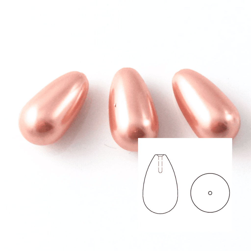 4 Swarovski 5816 Half Drilled Drop Pearls 15x8mm Rose Peach