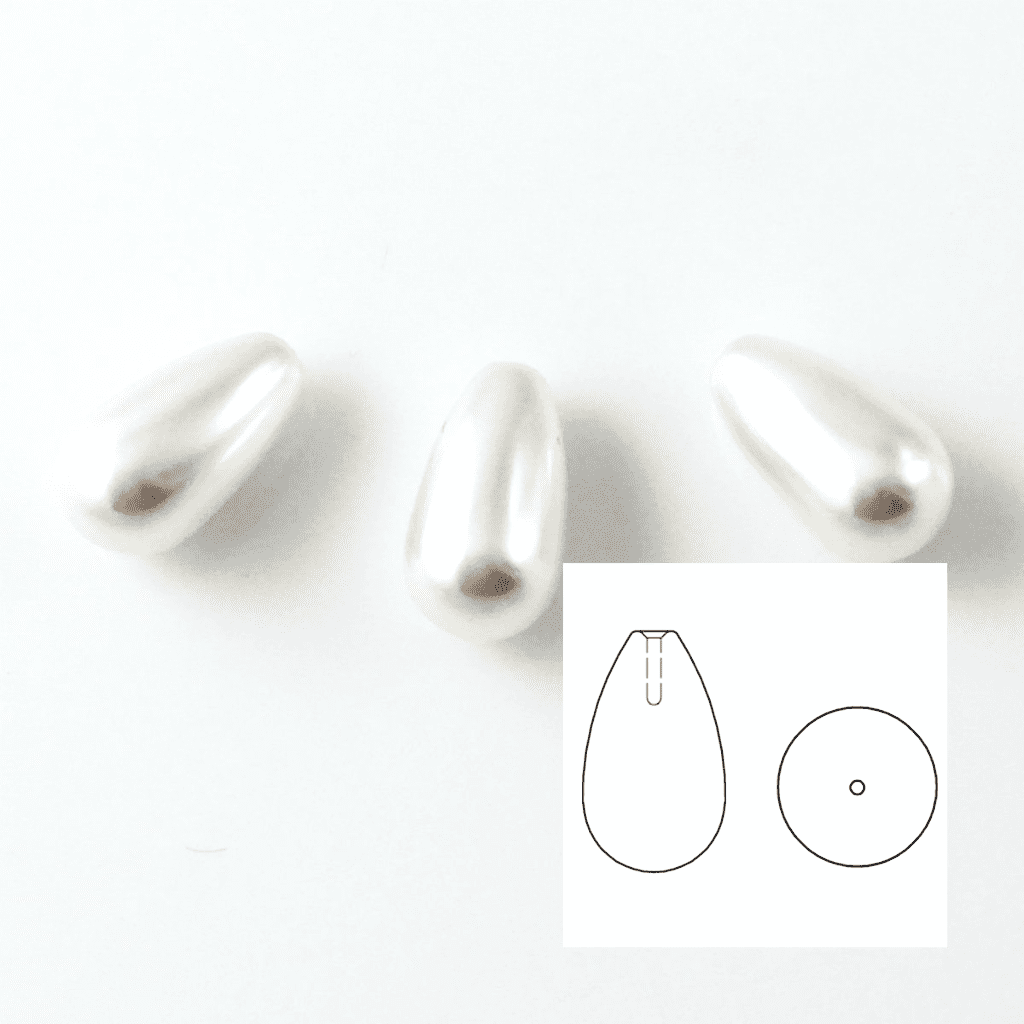 4 Swarovski 5816 Half Drilled Drop Pearls 15x8mm White
